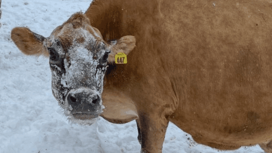 “Not all our animals hate the snow. Most of our cows play in it for a few minutes then want back in the barn,” Brian says. “One of the oldest cows in our herd, turns into a calf again and could play in the snow for hours if we let her! Everything is frozen so we are at it non-stop, cleaning out and fixing up the barns to make sure our girls stay warm, happy and healthy in this frigid weather.”