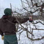 The apple and peach orchards also have their own unique rhythm during winter. The trees, which are in a dormant state, undergo crucial pruning that sets the foundation for the upcoming growing season. “Typically, pruning fruit trees is a process that takes two to three months,” Brian says.