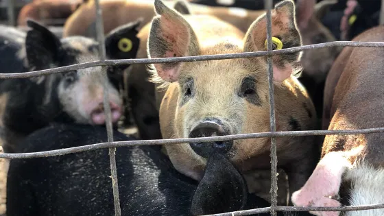 A bead of sweat runs down Farmer Andy Bauerโs face as he turns around as he backs the tractor up to the pig pen. Attached to the tractor is his fatherโs old John Deere grinder mixer machine holding a fresh load of pig feed made with soybean meal grown on the farm....