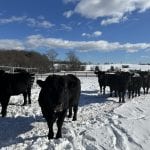 Caring for cattle in winter requires constant care. The biggest health concern is ensuring they maintain a healthy weight. “The biggest challenge I find caring for the cows in the winter is making sure that we pay attention to each cow and their health,” Zack says. “We are constantly checking on them and evaluating how they look and are acting so that we can make the right decision on how to move forward.”