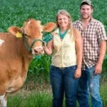 They milk around 180 cows that are mostly Holsteins, with some registered Guernsey cows as well. Like dogs and cats, breeds of cows have their own special traits. “They each have different personalities and their milk composition is different and both complement each other for the cheese,” Amanda says. For instance, Guernsey milk has higher butterfat content and beta-carotene content. Holstein milk is lower in fat and protein and is well-suited to cheesemaking.